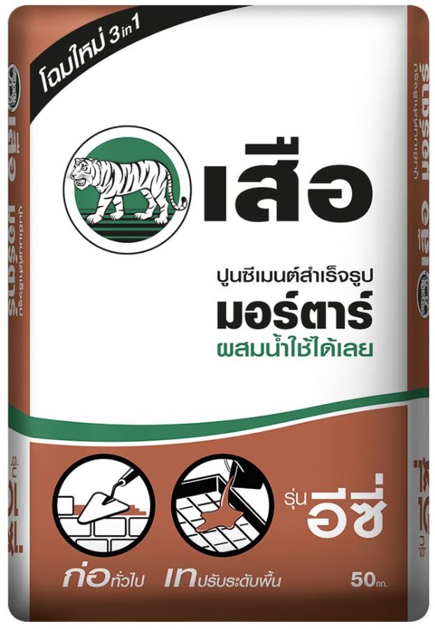 ปูนซีเมนต์ สำเร็จรูป เสือมอร์ตาร์ ก่อเท รุ่นอีซี่ บรรจุถุงขนาด 50กก.